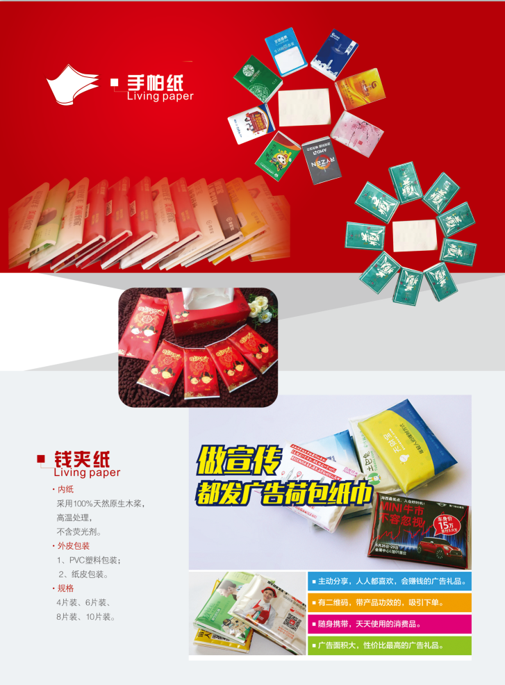 專設印制(zhì)廣告紙(zhǐ)巾,為(wèi)服務行(xíng)φ₽業(yè)配套用(yòng)紙(zhǐ)提供多(duō↑§ ±)方位的(de)選擇。