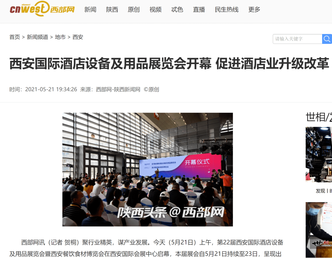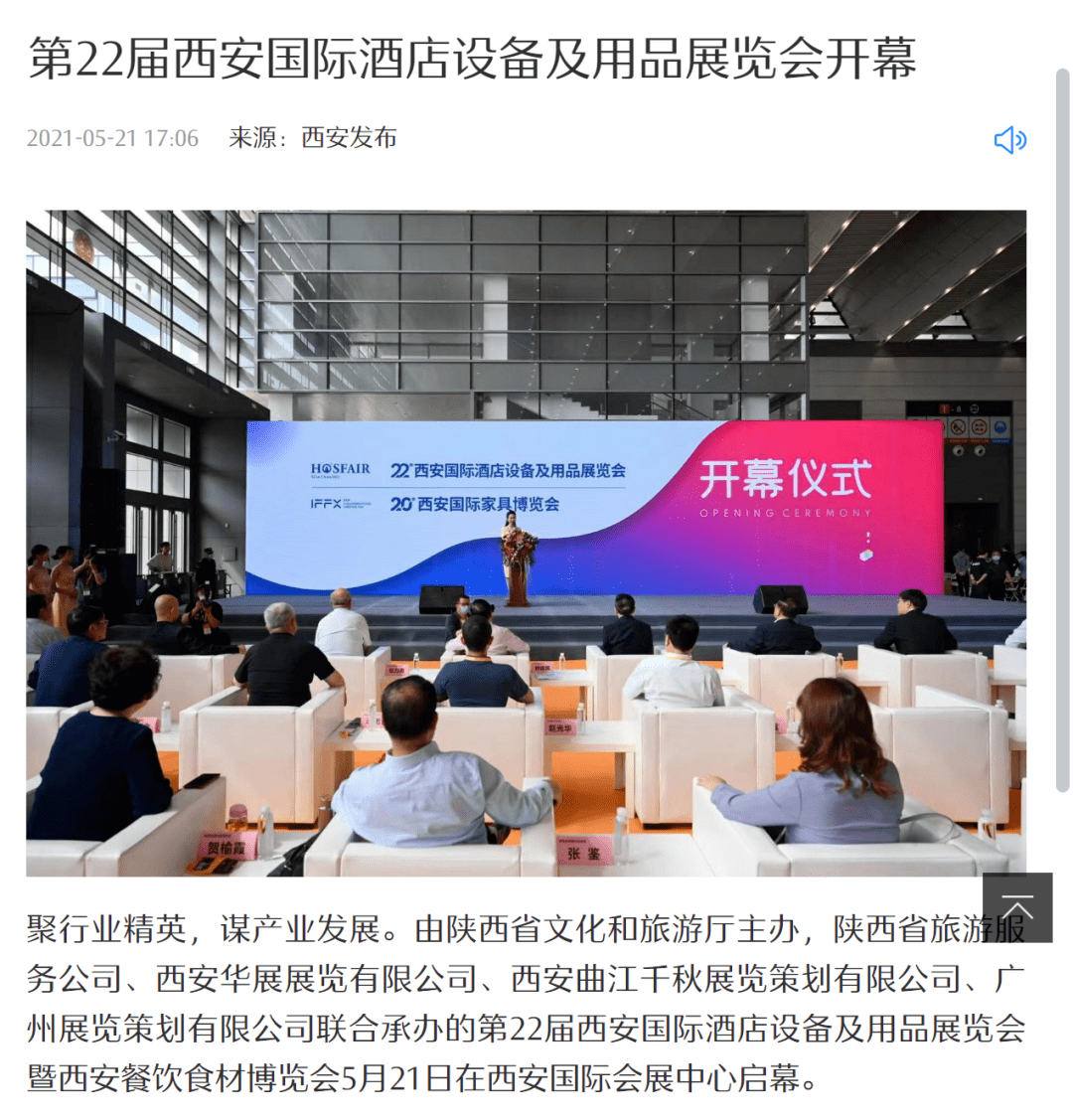 第22屆西(xī)安國(guó)際酒店(diàn)設備及用(yòng)品展覽會✘ > (huì)于2021年(nián)5月(yuè)21-23日(rì)在西(xī)安 ©國(guó)際會(huì)展中心成功舉辦。本屆展會(huì)由陝西(xī)省文(¶✔ wén)化(huà)和(hé)旅遊廳主辦,陝西(xī)省旅遊協會(hu∞ ì)、陝西(xī)省旅遊住宿業(yè)協會(huì)、陝西(xī)省飯店(diàn)協÷γ→會(huì)、陝西(xī)省餐飲業(yè)商會(huì)、陝西(x≥ €ī)省烹饪餐飲行(xíng)業(yè)協會(huì) × 、陝西(xī)省烘焙行(xíng)業(yè)協會(huì)、陝西(שxī)省洗染行(xíng)業(yè)協會(huì)、陝西(xī)省清洗保潔協會(huì)、西(x♦ Ω₹ī)安市(shì)酒店(diàn)營銷經理(lǐ)人(rén)協會(huì)、西(β xī)安旅遊協會(huì)、西(xī)安咖啡行(xíng$₽ Ω)業(yè)協會(huì)、西(xī)安市(shì)酒店(dià≤₽✔n)用(yòng)品行(xíng)業(yè)協會(h&ε←uì)共同協辦,陝西(xī)省旅遊服務公司、西(xī)安α↑華展展覽有(yǒu)限公司、西(xī)安曲江千秋展覽策劃有(yǒu)限公司、廣州正器展覽策劃有♦¶限公司聯合承辦。
