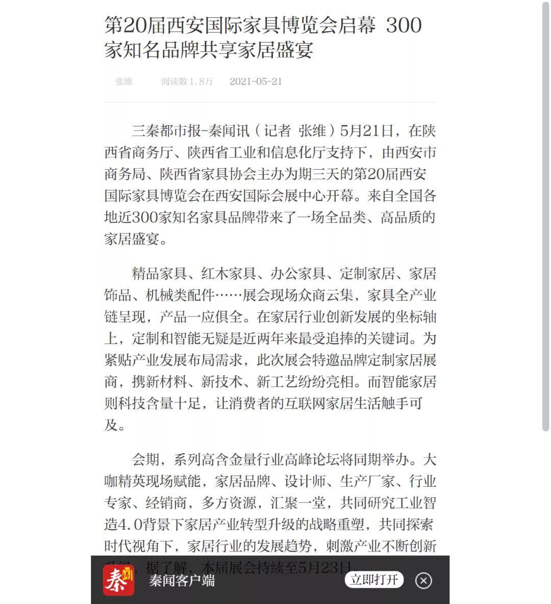 展會(huì)期間(jiān),來(lái)自(zì)騰訊✔♥€×家(jiā)居、搜狐焦點家(jiā)居、西(xī)安報(bào)業(yè)傳媒集團、¶≈→↓西(xī)安發布、網易新聞、華商報(bào)等專業(yè)媒體(tǐ)對(duì)展會(huì) π做(zuò)了(le)跟蹤報(bào)道(dào)。分(fēn)别從(cóng)開(kāi)幕₽&<→盛典、展會(huì)平台功能(néng)、供銷兩旺、新品發布、論壇助¥♥≤力等多(duō)個(gè)角度切入,并以文(wén)字、語音(yīn)、視(shì>≤)頻(pín)、直播等形式全方位報(bào)道(dà✘×∞♠o),為(wèi)參展商們帶來(lái)了(le)實σ₹®實在在的(de)品牌曝光(guāng),也(yě)使本次展會(hu↔φì)的(de)宣傳推廣達到(dào)了(le)新高(gāo)度。