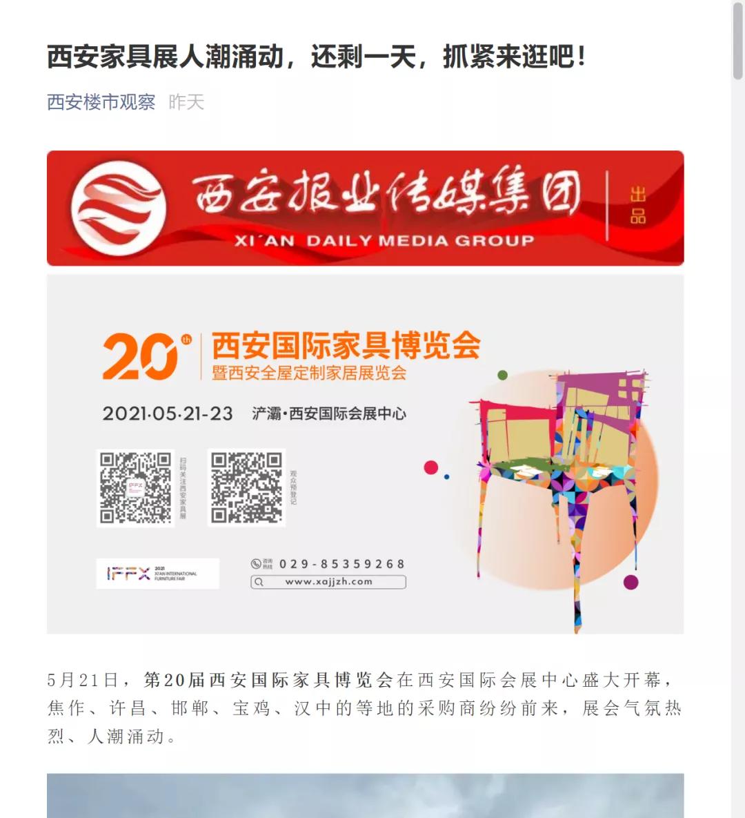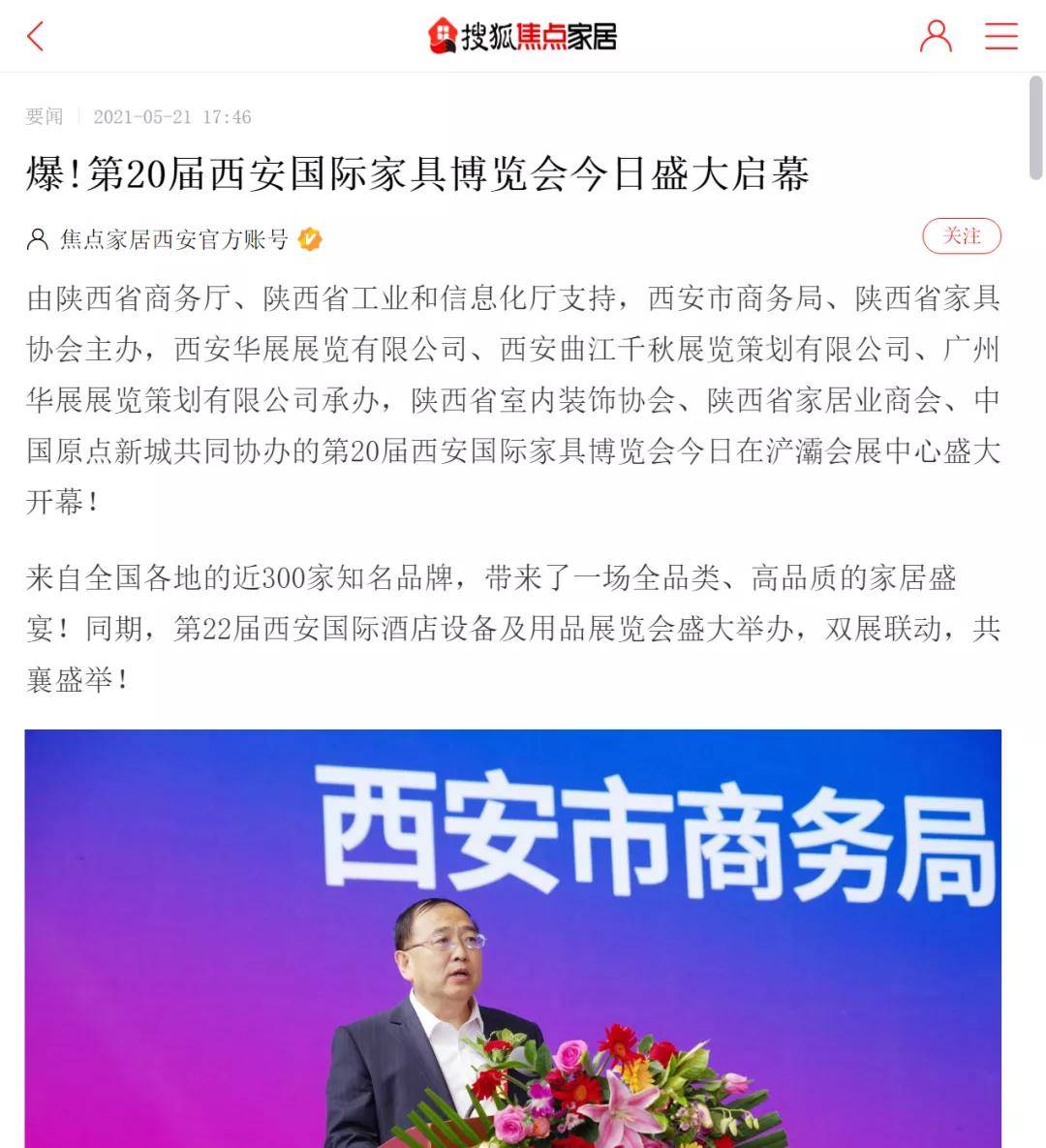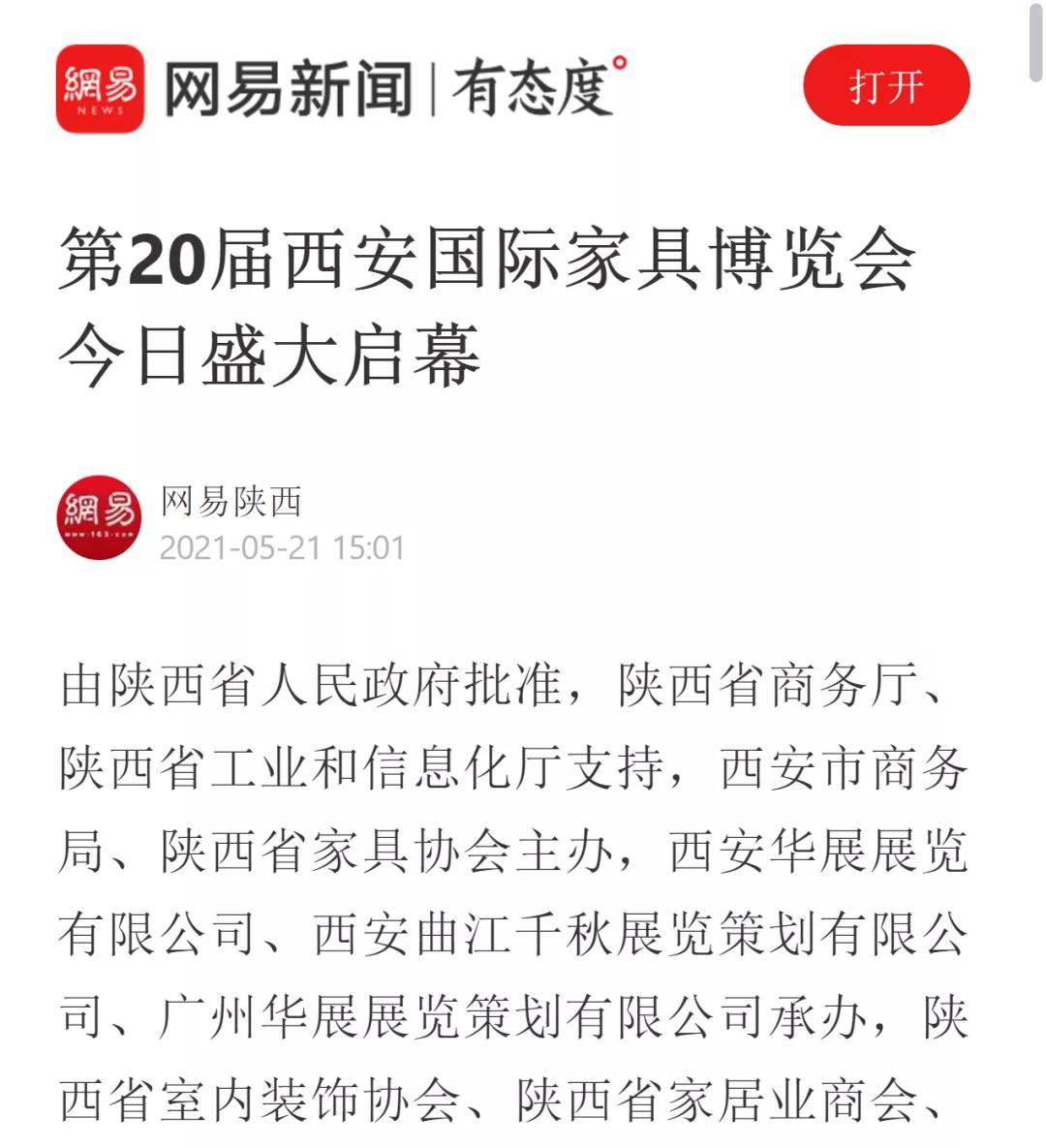 第20屆西(xī)安國(guó)際家(jiā)具博覽會(huì)于2021年(nΩ§ián)5月(yuè)21-23日(rì)在西(xī)安國(guó)際會(huì)展中心≈✘成功舉辦。本屆展會(huì)經陝西(xī)省人(rén)民(mín)政府批準,由陝西(α±πxī)省商務廳、陝西(xī)省工(gōng)業(yè)和(hé∞>)信息化(huà)廳支持,西(xī)安市(shì)商務局、陝西(xī)省家(jiā)具協會(h λuì)主辦,西(xī)安華展展覽有(yǒu)限公司、₩∑φ∏西(xī)安曲江千秋展覽策劃有(yǒu)限公司、廣州正器展覽策劃有限公司承辦,陝西(xī)省室內∏₩(nèi)裝飾協會(huì)、陝西(xī)省家(jiā)居業(yè)商會(huì)、中§×£國(guó)原點新城(chéng)共同協辦。